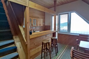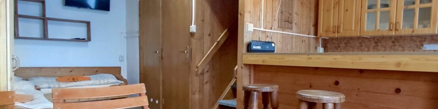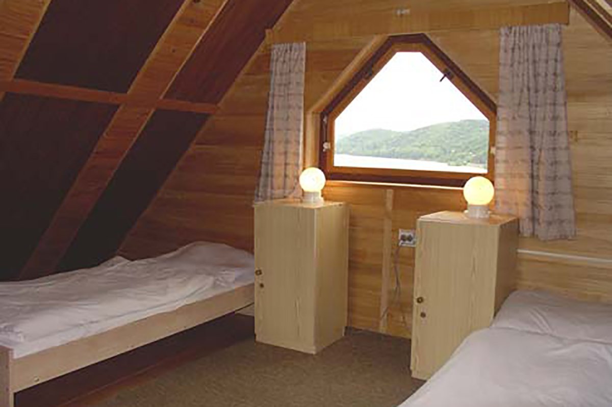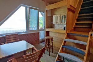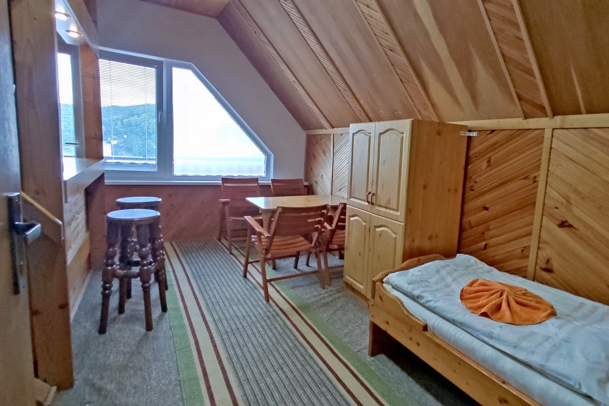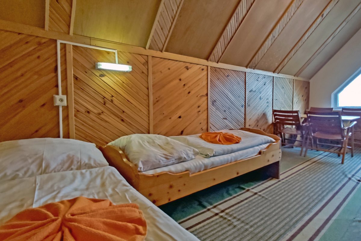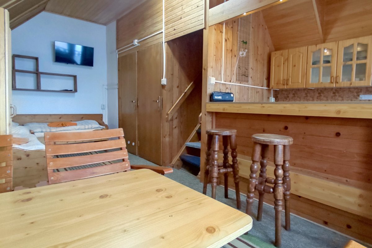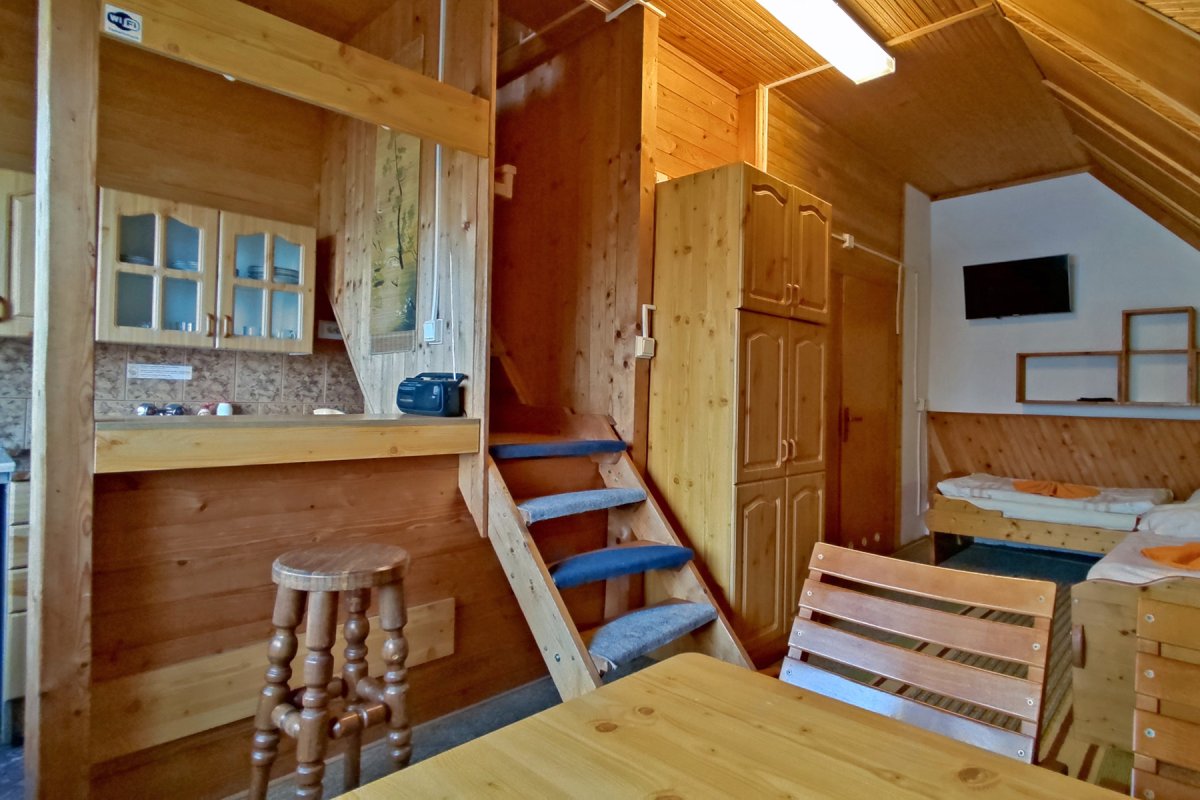 Na poschodí chaty sa nachádzajú dve 4-ložkové mezonetové izby. Každá z mezonetových izieb je samostatná - má kúpeľňu, kuchynku a balkón. V obývacej časti izby sú dve masívne samostatné lôžka, v podkrovnej časti izby ďalšie dve lôžka. Lôžka nie je možné presúvať, či spájať.