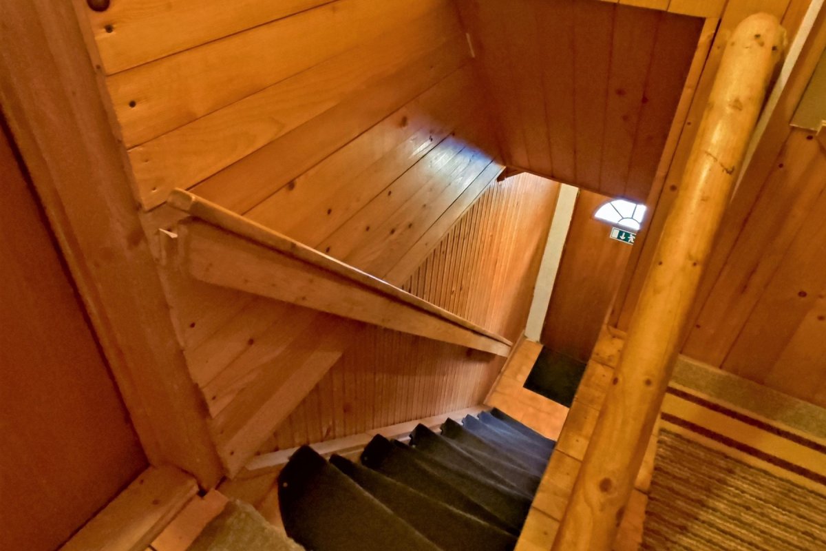 Podobné strmšie schodiská sú aj v jednotlivých izbách na prístup do podkrovných spální.