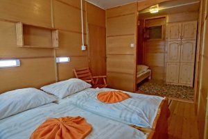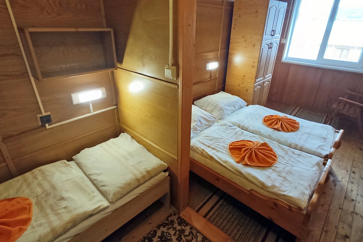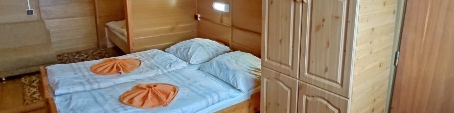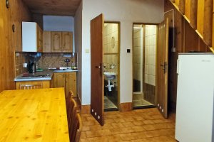 Dvojizba na prízemí je ideálna pre viacčlenné rodiny (4-7 osôb). Tie oceňujú najmä samostatné spálne a obývaciu časť s kuchynkou. K dispozícii je priestranná terasa s nádherným výhľadom na Domašu.