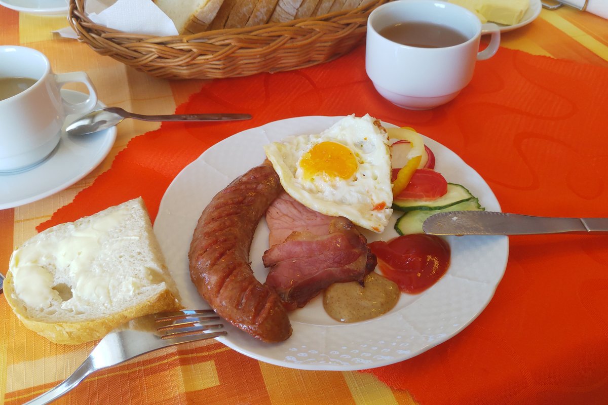 - rozšírené kontinentálne raňajky, raňajkové jedlá poďla týždňového menu plus minibufet 🖹